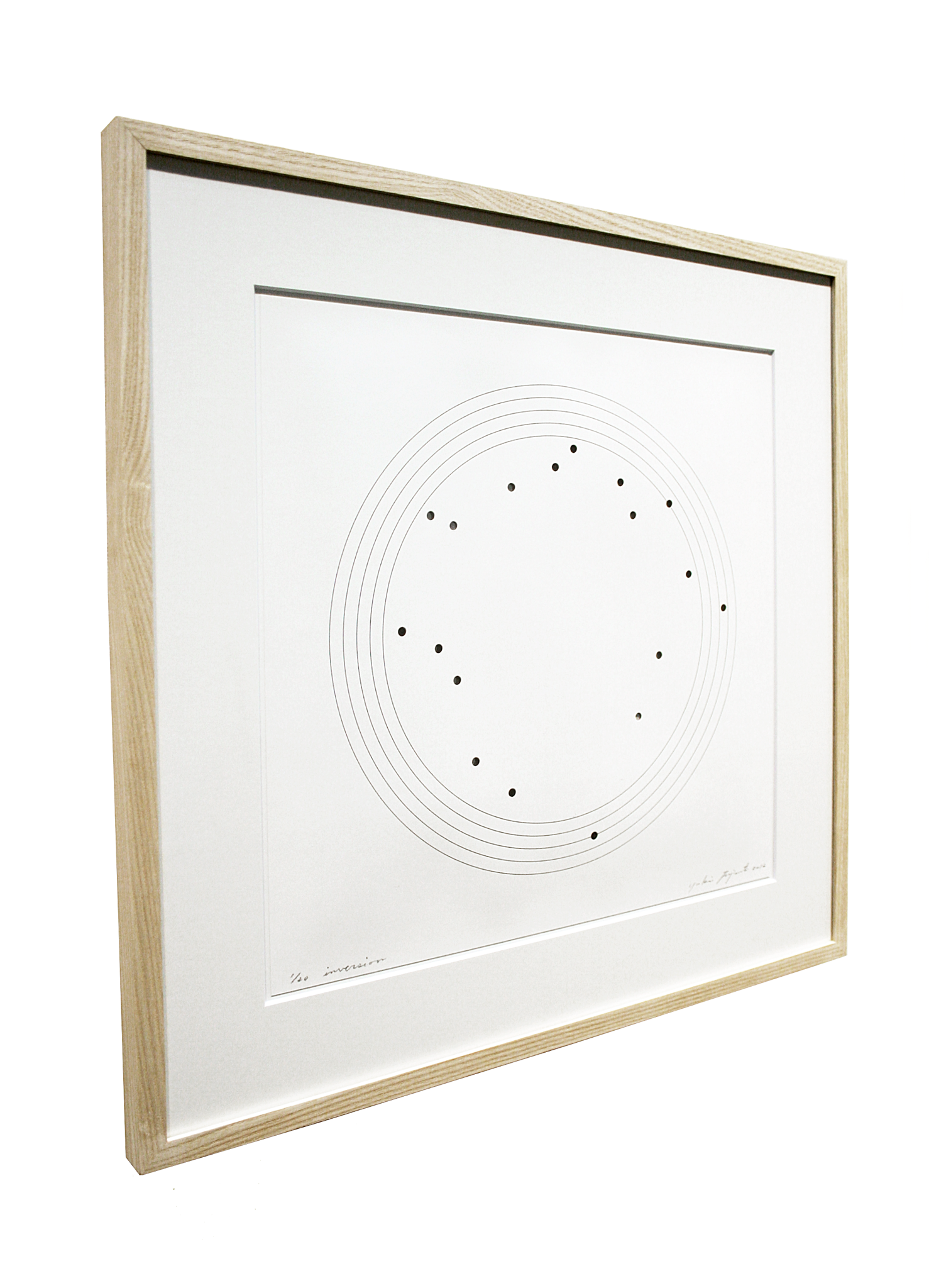 プリントの下にはホログラム紙が取り付けられており、一点一点手作業で空けられた穴を通して、音のイメージを変化する光としてご覧いただけます。