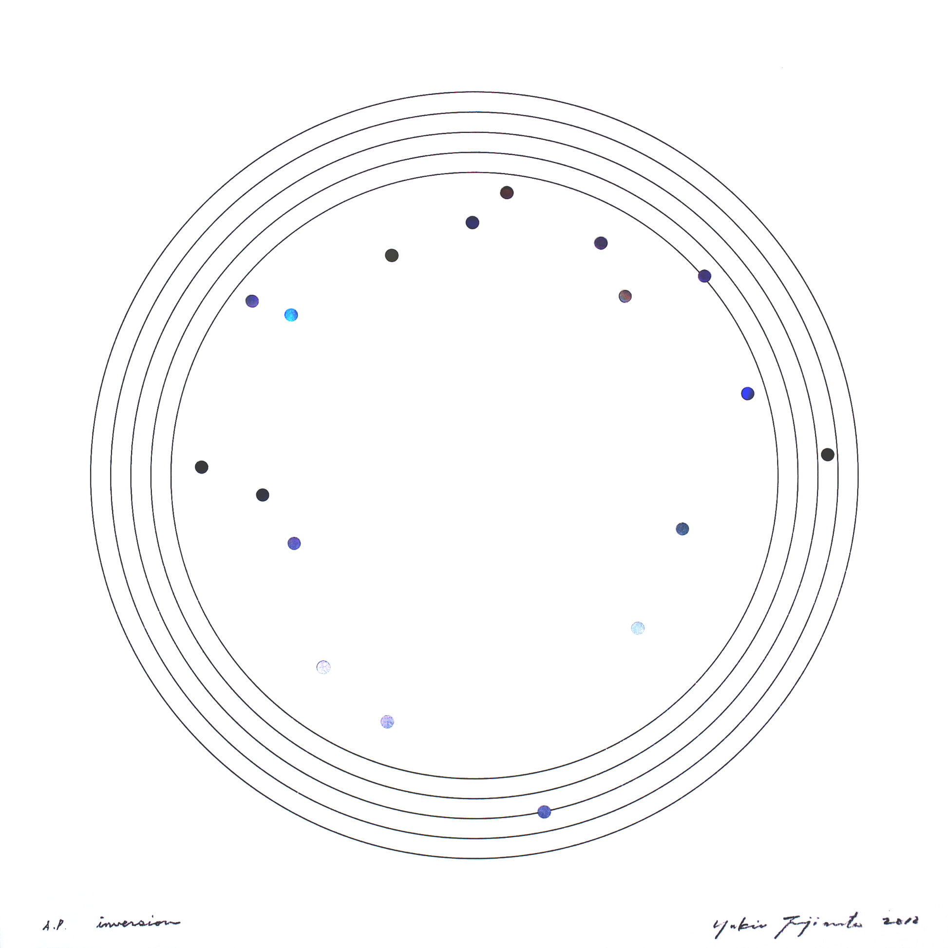 基本旋律(Prime)をベースに、その諧調を逆行・反行・反逆行させた音のイメージを、聴覚ではなく視覚から体感していただく作品となっています。