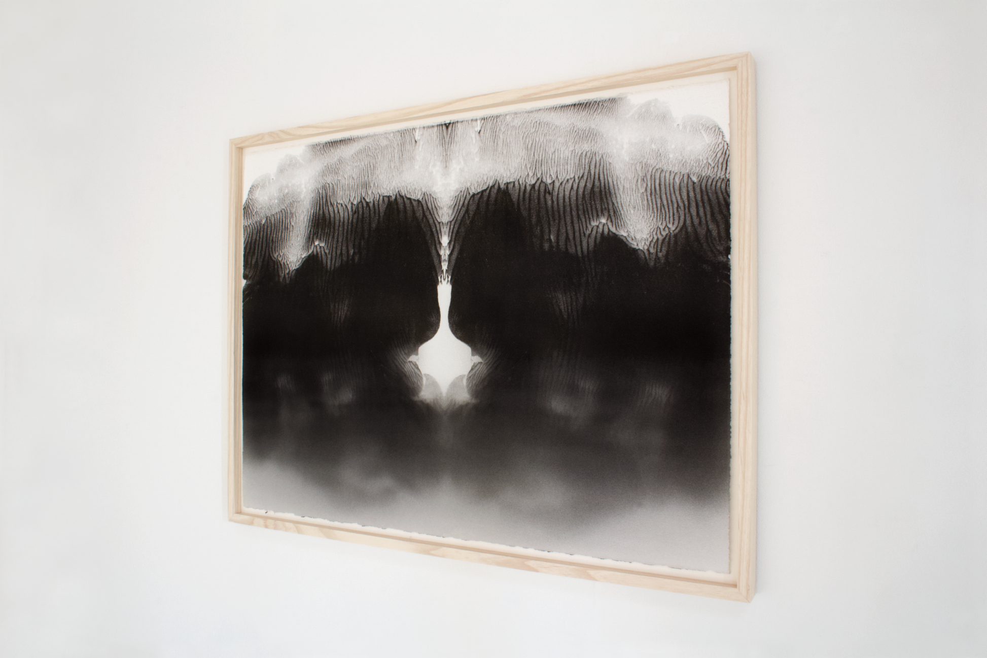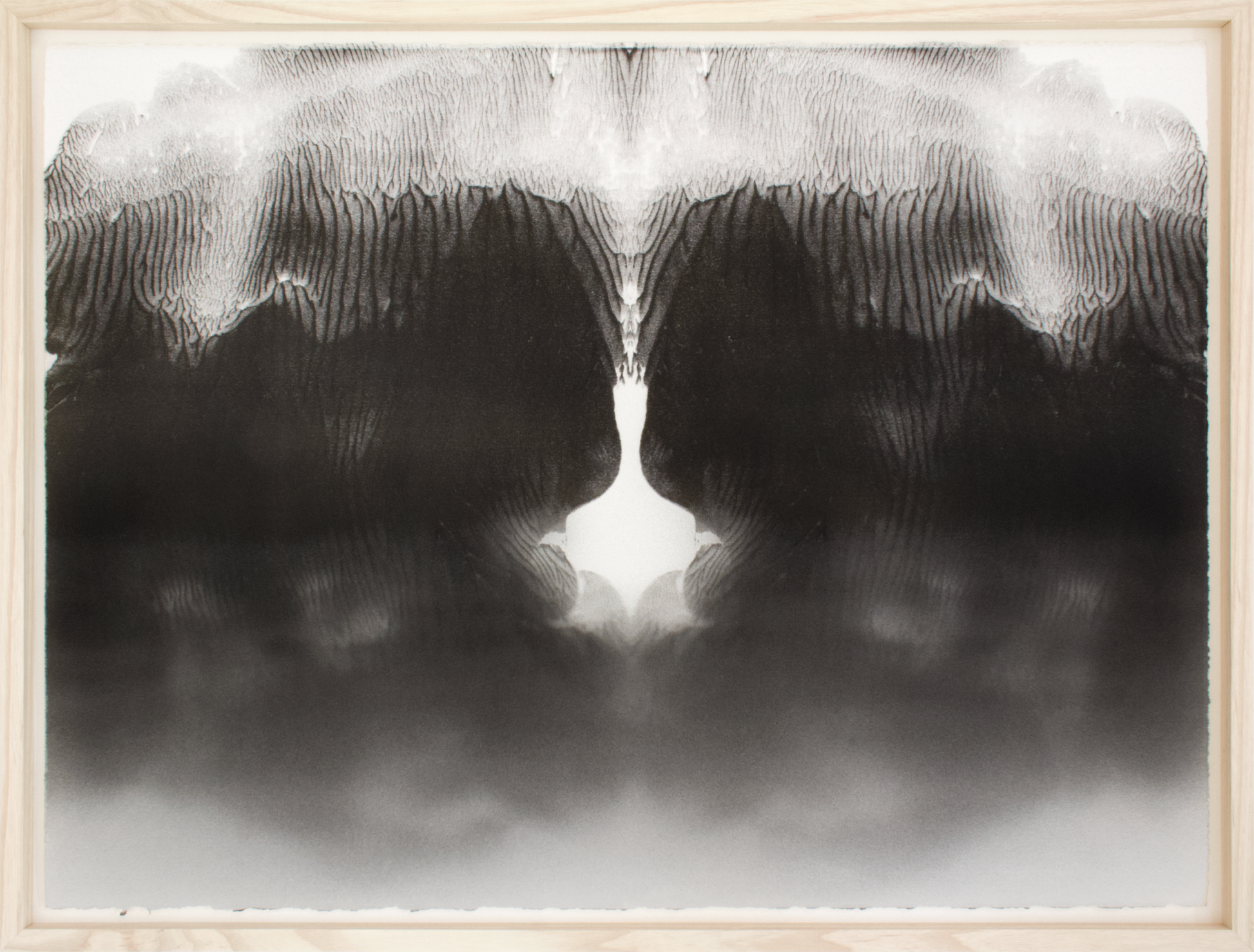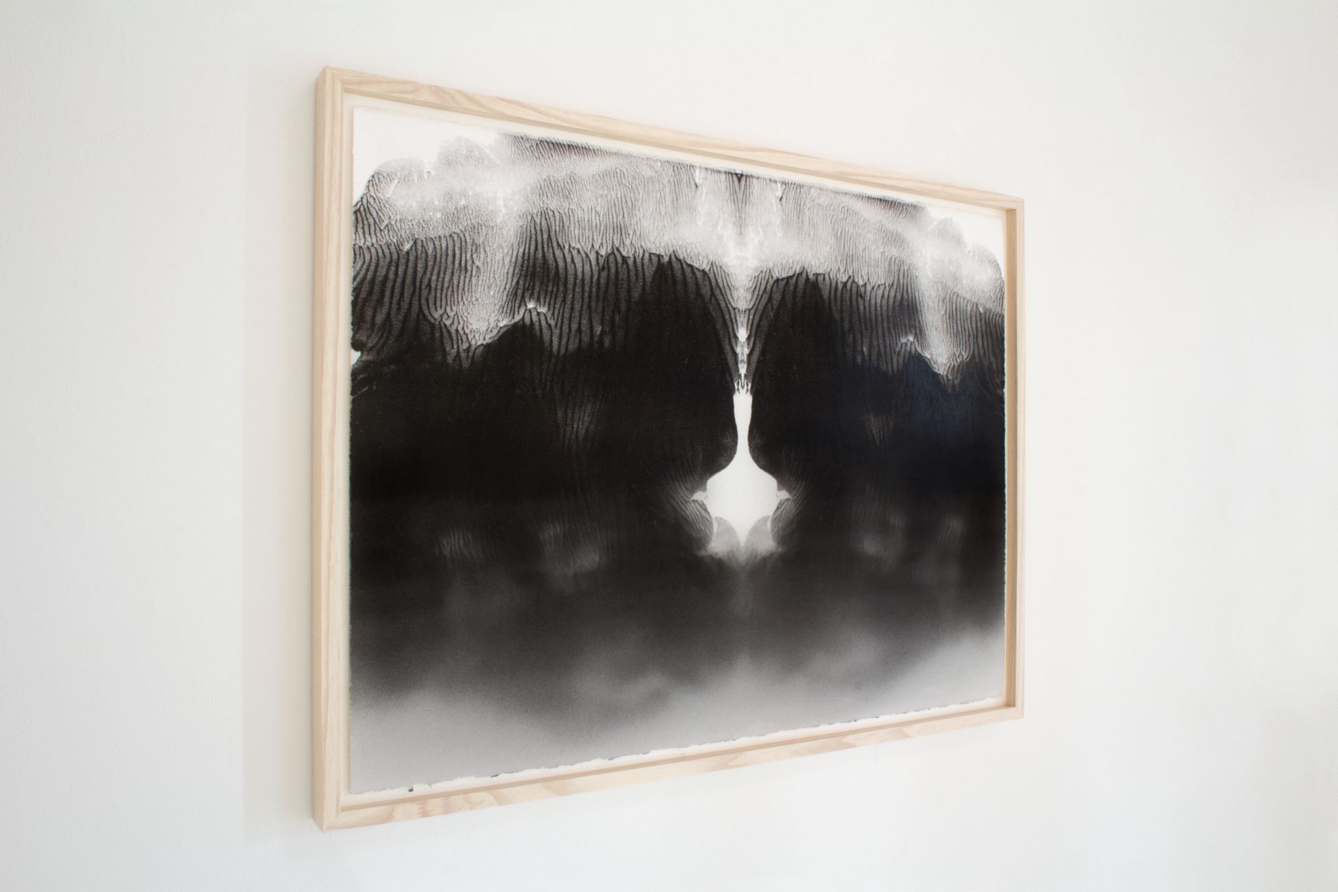 本作品は2019年にギャラリーノマルでの個展「投影と影取」で発表された新シリーズからの1点。「スループリンティング(※)」という自ら編み出した技法を駆使してノマルの工房刷り師との協働で制作された、他に類を見ないユニークな作品です。