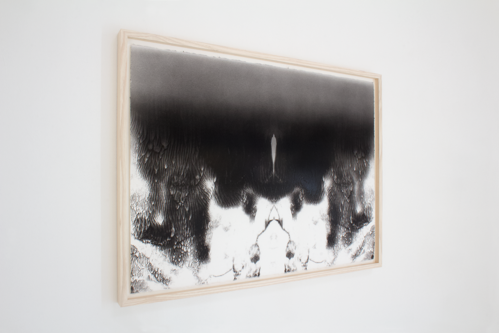 本作品は2019年にギャラリーノマルでの個展「投影と影取」で発表された新シリーズからの1点。「スループリンティング(※)」という自ら編み出した技法を駆使してノマルの工房刷り師との協働で制作された、他に類を見ないユニークな作品です。