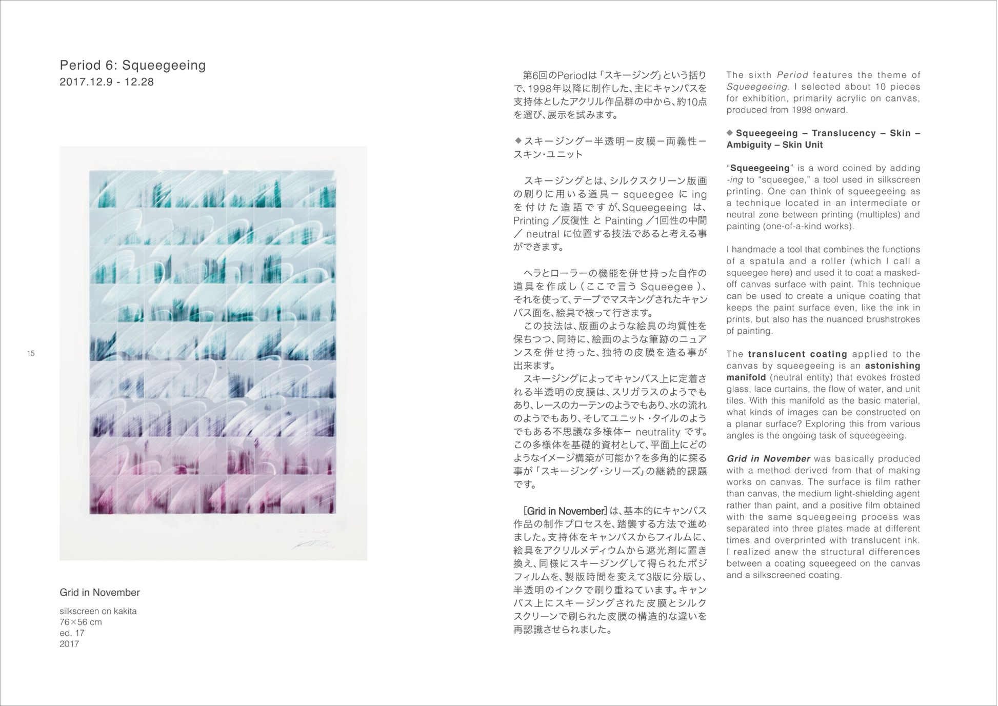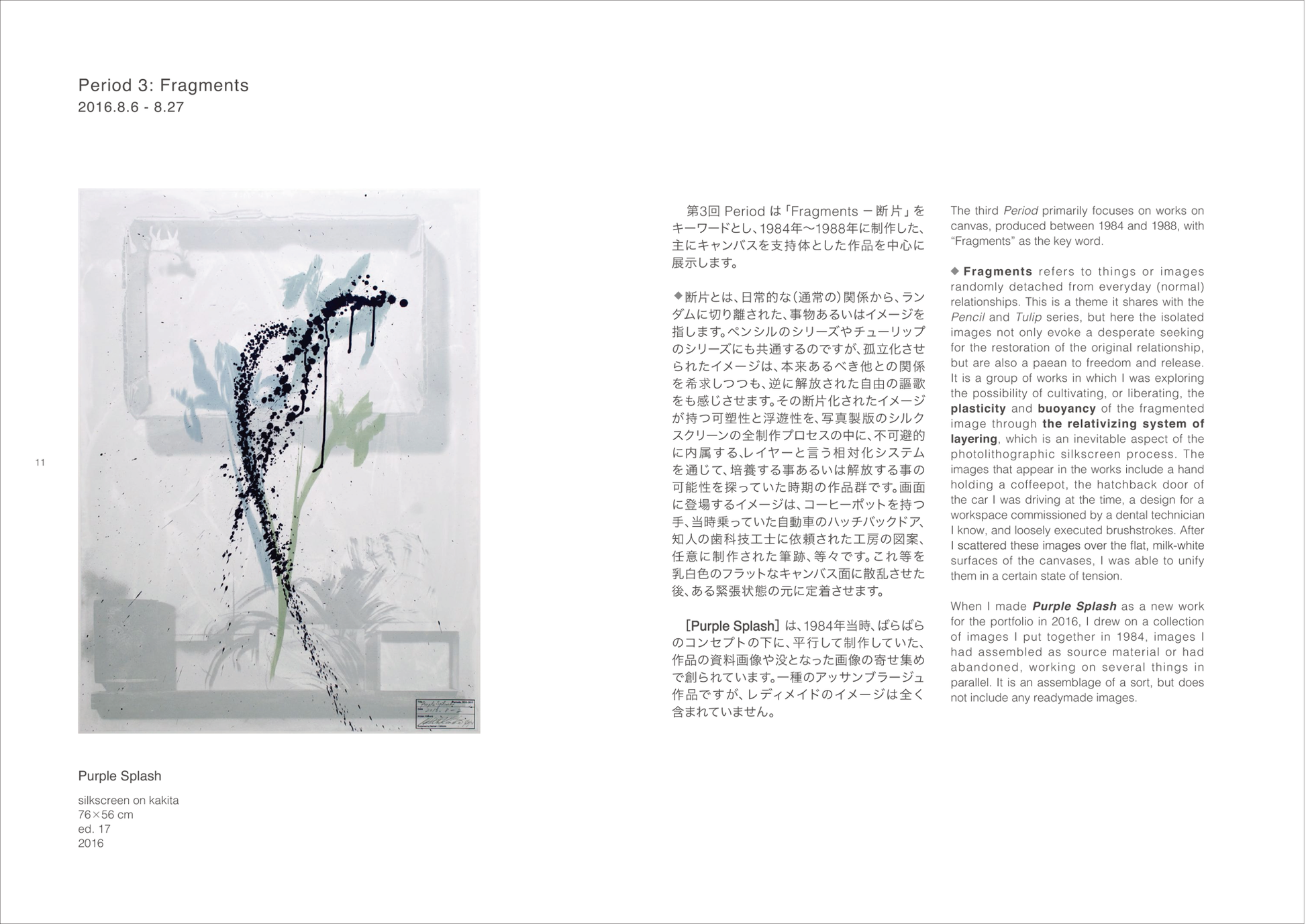作家による7回に分けて行われたPeriodの全解説と、中谷至宏氏(京都市美術館学芸員)、三脇康生氏(精神科医/美術批評家)による評論文、新作版画全10点の図版を掲載。