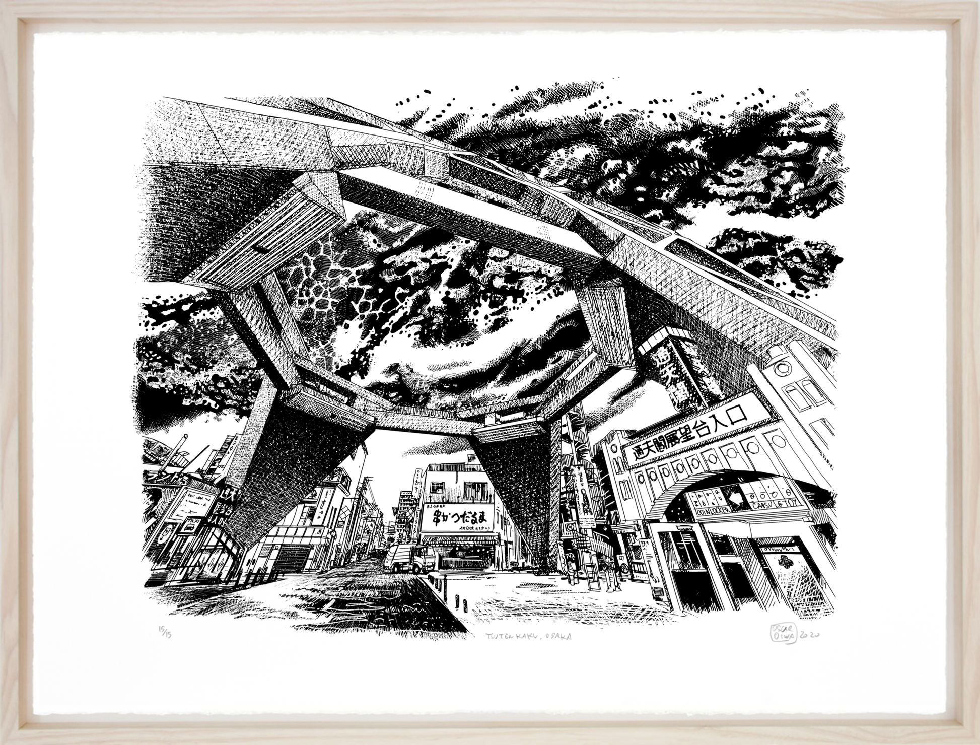 「Quarantine Drawing Series」はコンピュータを使って描かれたデジタルデータですが、アーティストの空想の旅を、全世界の人と分かち合う手段としてシルクスクリーンによる版画作品に刻印することに。かくして計20点、エディション数限定15の版画作品として2020年末に完成しました。