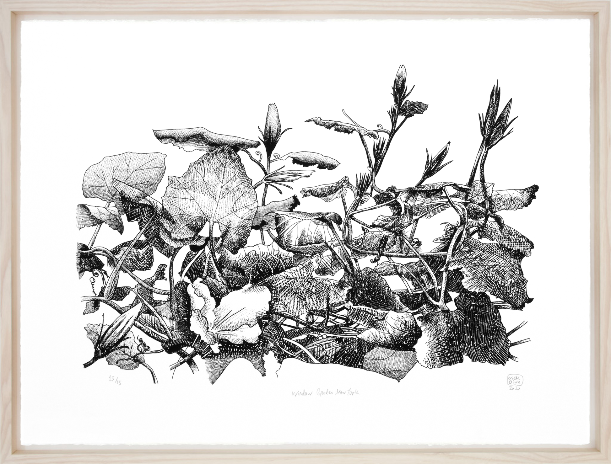 「Quarantine Drawing Series」はコンピュータを使って描かれたデジタルデータですが、アーティストの空想の旅を、全世界の人と分かち合う手段としてシルクスクリーンによる版画作品に刻印することに。かくして計20点、エディション数限定15の版画作品として2020年末に完成しました。