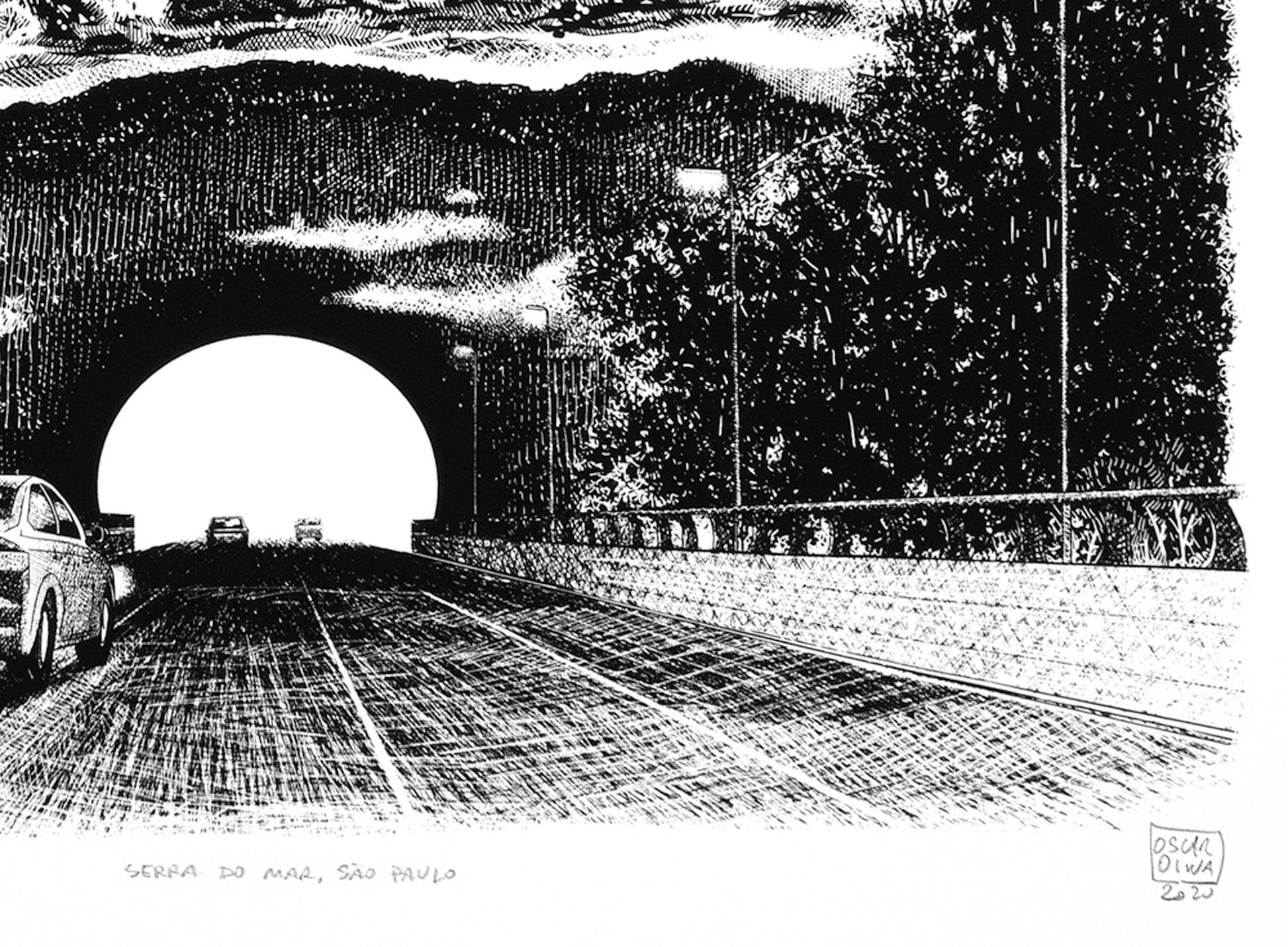 2月に中国とヨーロッパの一部が封鎖されていたとき、アメリカ大陸にはまだ感染は広がっていなかった。そのとき僕は故郷のサンパウロにいて、そこから高速道路でクバタンという工業都市に行った。途中の原生林に囲まれた景色は別世界のようだった。トンネルは暗いところのはずだが、このところ世の中がとても恐ろしいところになってきて、トンネルの入口が魅力的な避難場所のように思える。