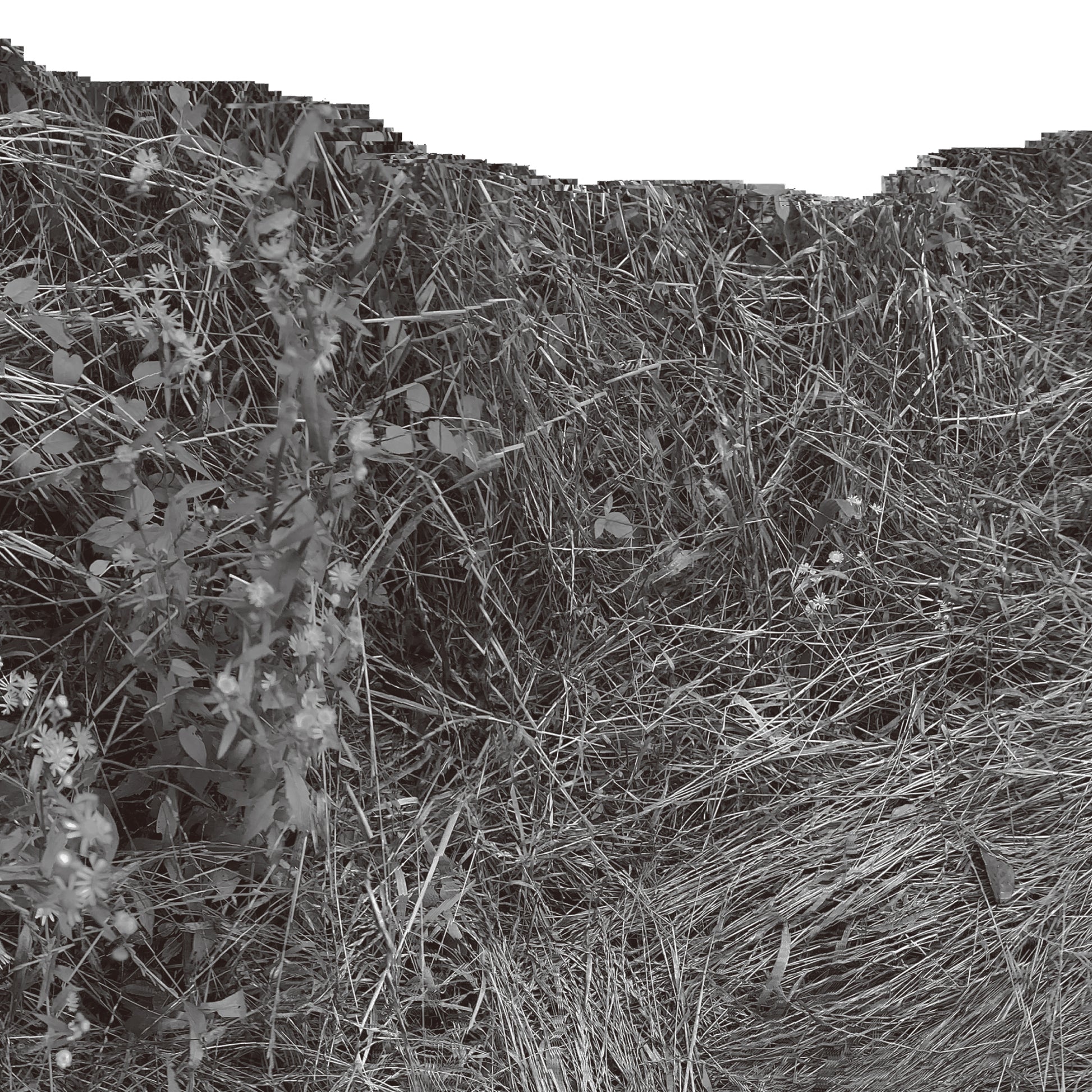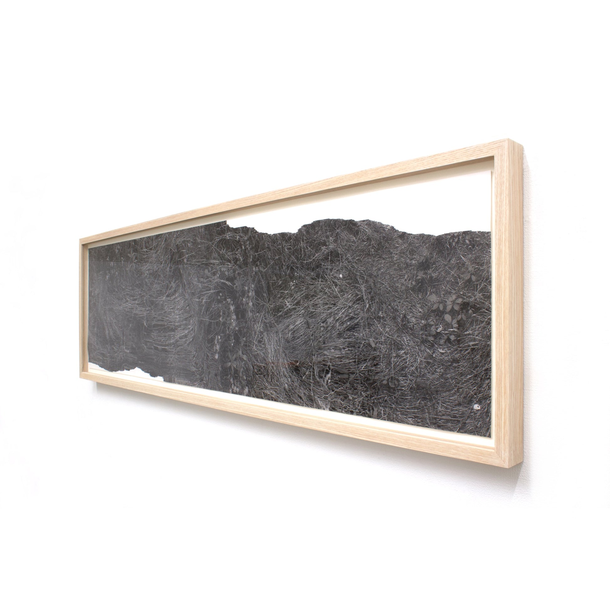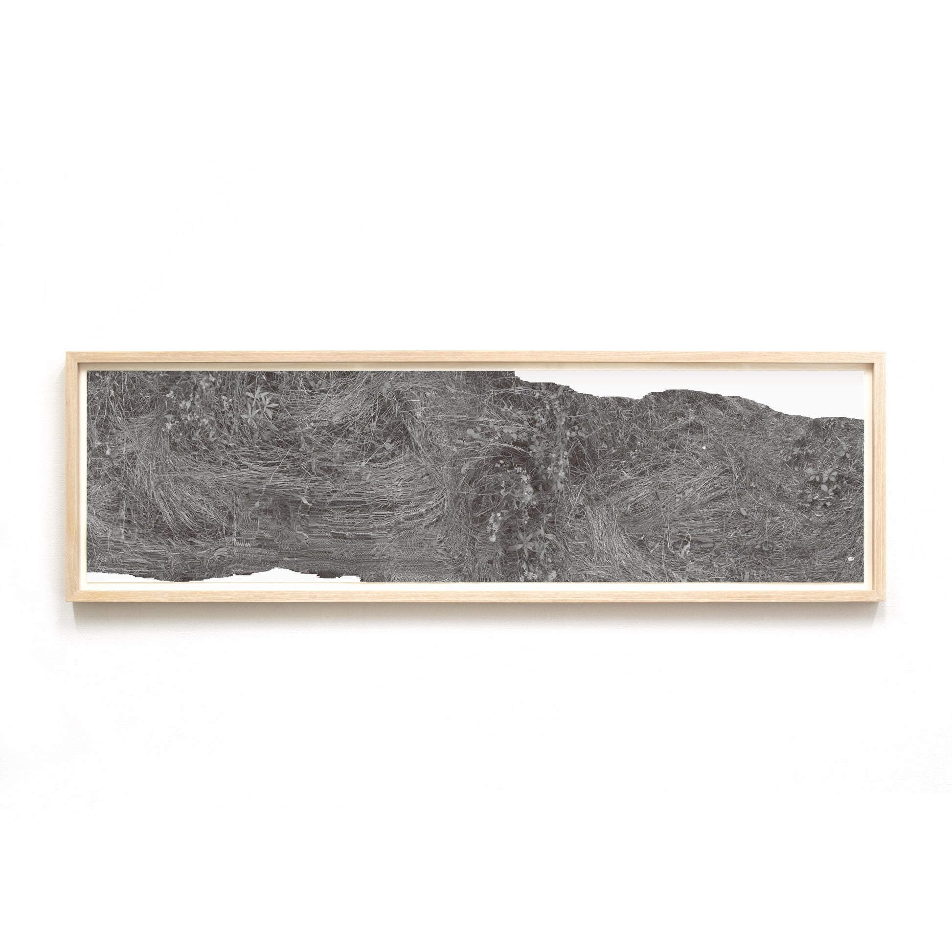 iphoneのパノラマ撮影モードを使って足元の草地を歩きながら撮影したイメージを、レーザープリンターを使用して簡易にアウトプットした作品。稲垣の空間や時間の捉え方が具体的なビジュアルとして反映され、映像とも類似した特徴的な作品となりました。