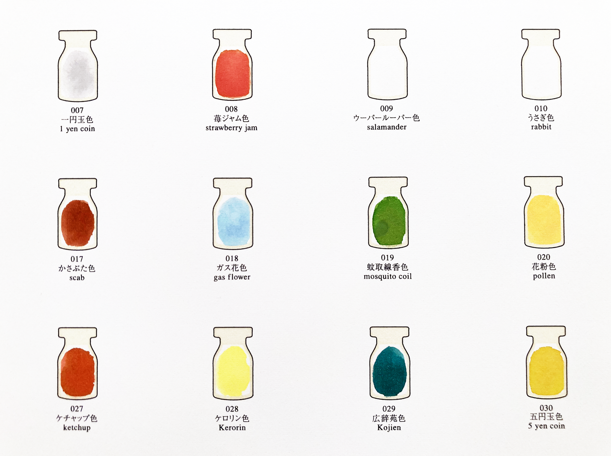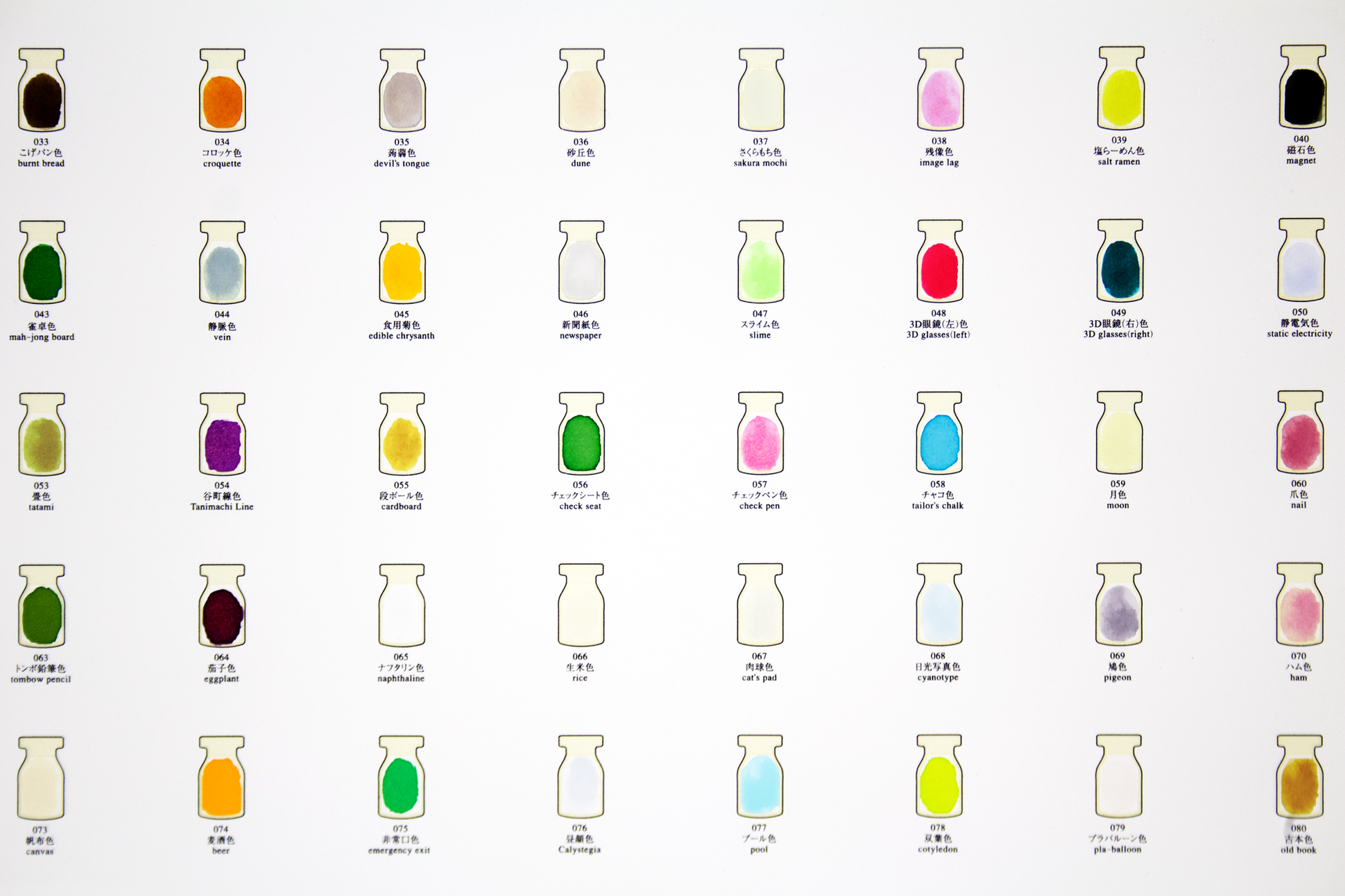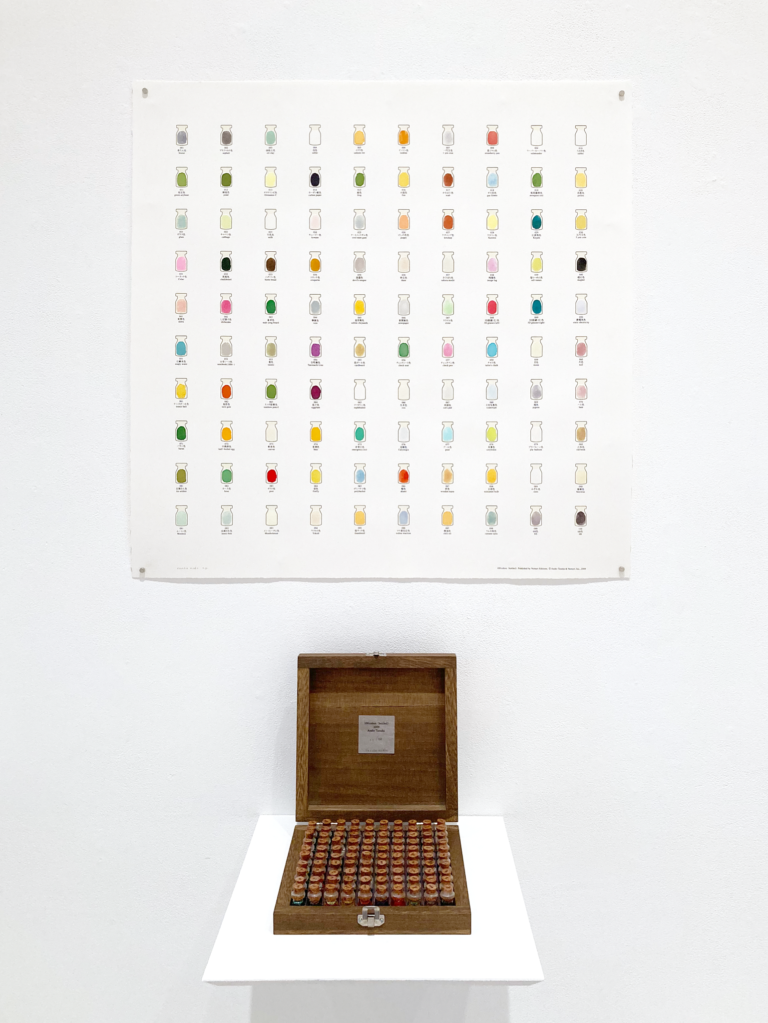 オリジナル・カラーインク100色を瓶に収めたマルティプル作品。