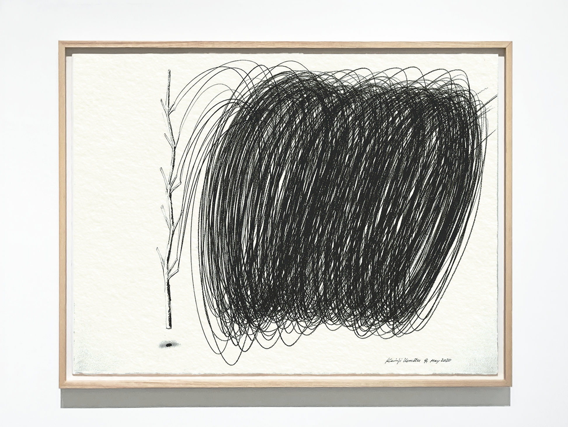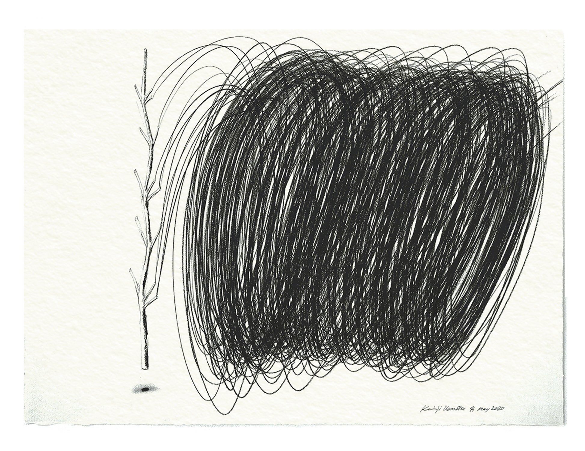 枝から出るエネルギー・みえないエネルギーを描いてみようと思った。壁面のInstallationと違ってエネルギーの場を紙面の空間に描いてみた。