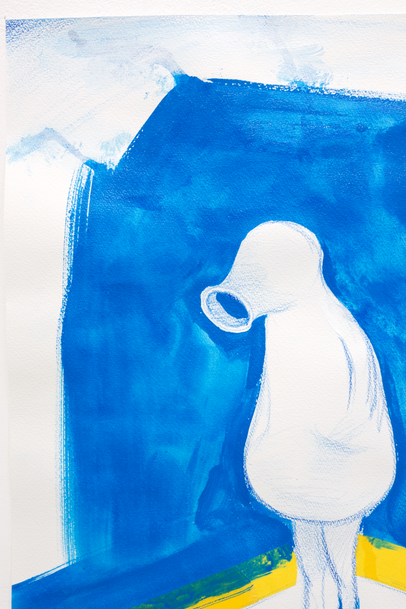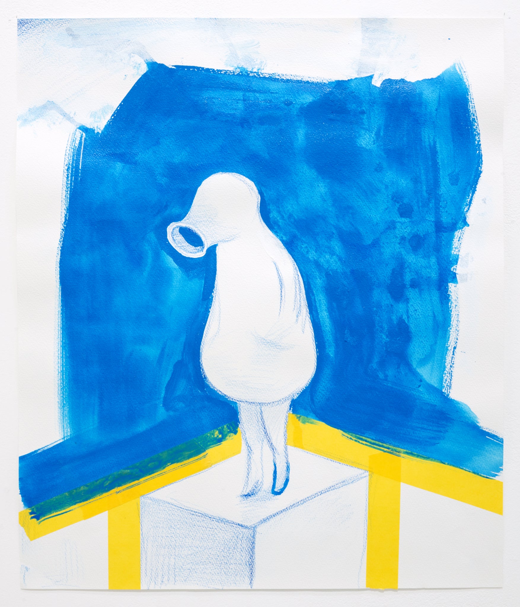 日本画を学んだ後、“空間の中にある立体”に興味を持ち工芸、彫刻を学び直して現在の表現に行き着いた高嶋。ノマルの元ディレクター林聡の提案により制作された、陶作品に通じるカラーリングのドローイングは、原点回帰でありながらこれまで培った立体感覚が反映された作品となっています。