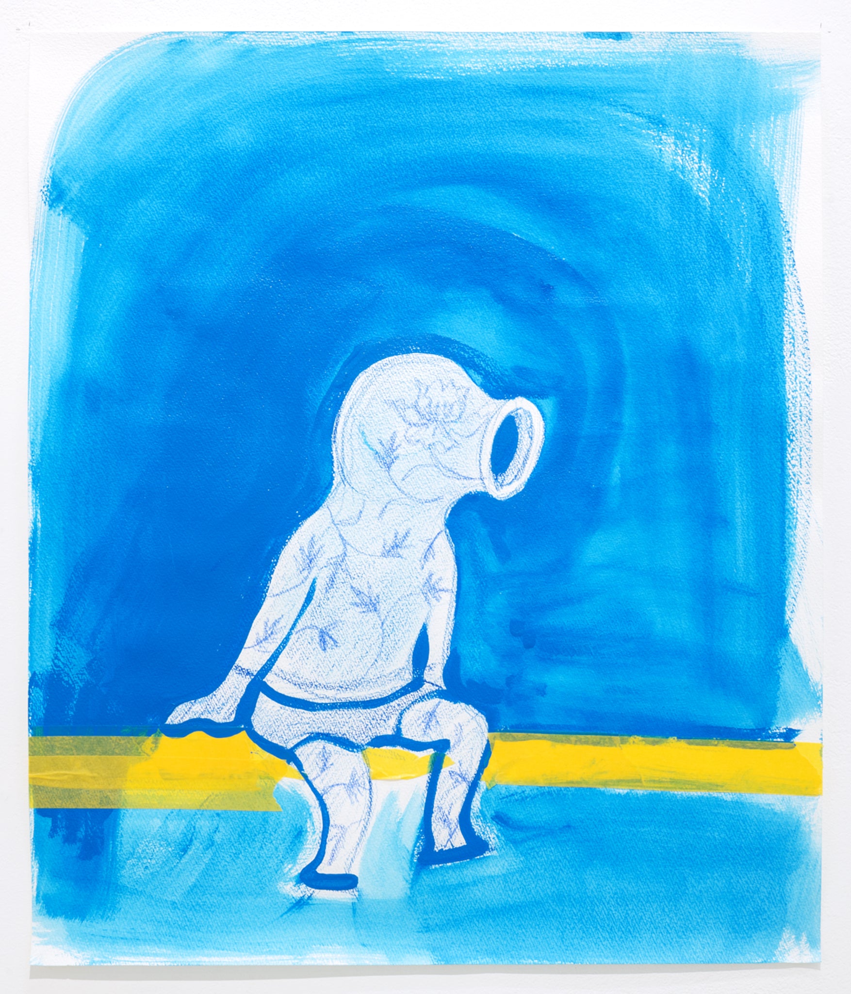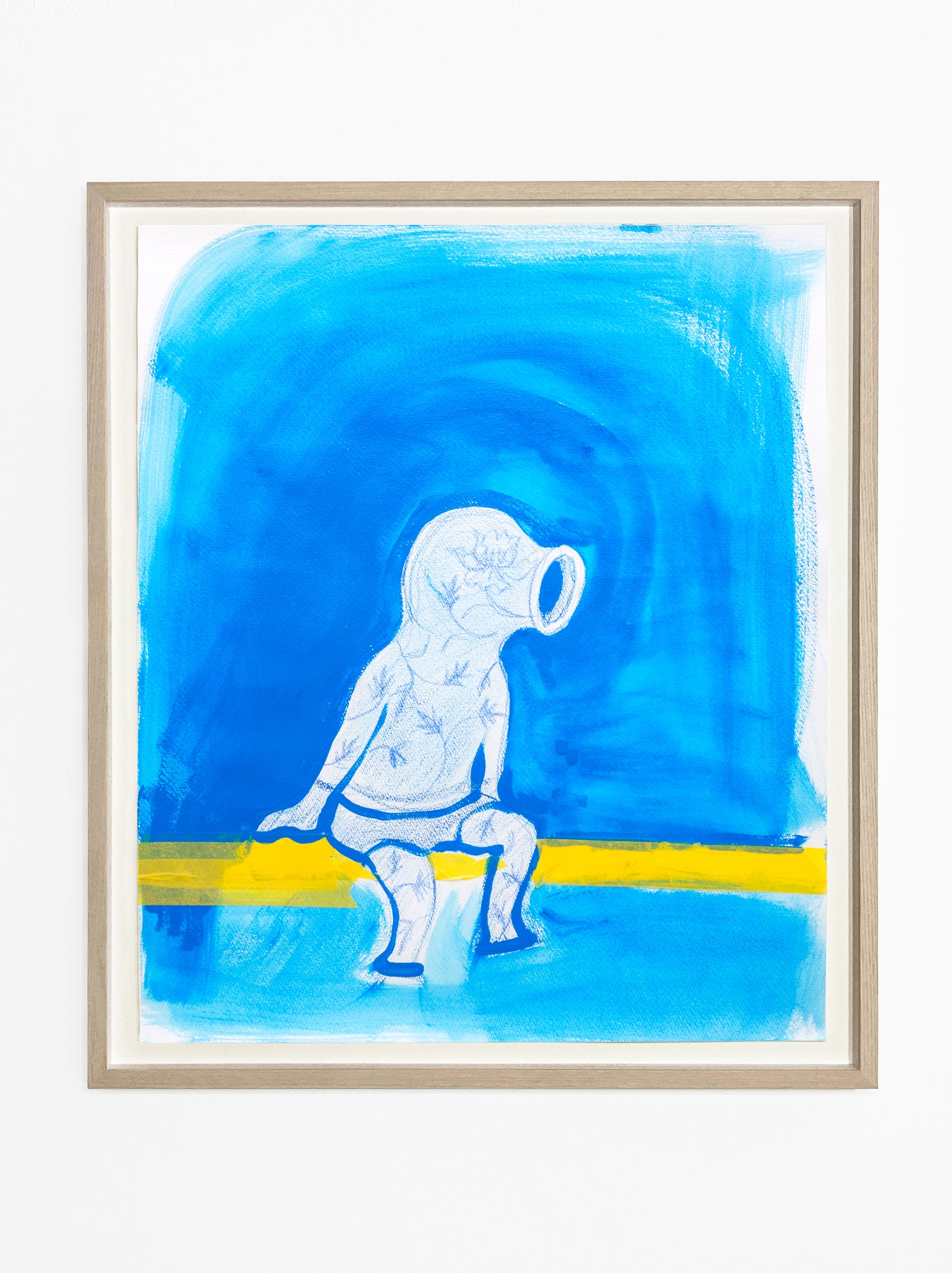日本画を学んだ後、“空間の中にある立体”に興味を持ち工芸、彫刻を学び直して現在の表現に行き着いた高嶋。ノマルの元ディレクター林聡の提案により制作された、陶作品に通じるカラーリングのドローイングは、原点回帰でありながらこれまで培った立体感覚が反映された作品となっています。
